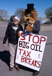 From Aurora to Pueblo – the heart of swing-voting Colorado – environmental groups are calling out U.S. Representatives Mike Coffman and Scott Tipton for making people pay twice for gasoline. On tax day, 2012, Clean Water Action and Colorado Conservation Voters held events at gas stations where drivers filling up at the pump took part in a photo petition with a costumed “Big Oil Fat Cat” calling for an end to special tax breaks and subsidies to the oil and gas industry.