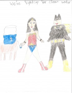 How are we fighting back? We don’t have the millions of dollars the polluters and special interests do, but we DO have the power of people just like you. Every night our organizers knock on thousands of doors across the country and invite people to speak up for clean water. So far we’ve collected nearly 40,000 handwritten letters from people who get that we need to do more to protect our water now and for future generations. And their kids get it too – like the little girl who drew this picture of Wonder Woman and Batman fighting for clean water.