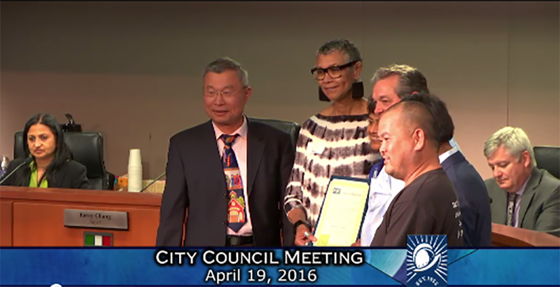City of Cupertino Mayor Barry Chang awarded our Rethink Disposable businesses for their incredible green success recently at a city council meeting.