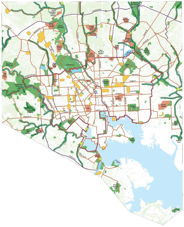 Do you live in Broadway East, South Clifton Park, Druid Heights, Upton, Reservoir Hill, Penn North, Harlem Park, Sandtown-Winchester, Boyd-Booth, Shipley Hill, or Carrollton Ridge? Then check out the Focus Area plans, see if they reflect what you want to come to your neighborhood, and let the Office of Sustainability know. Do you live elsewhere in the city? Look over the plans for creating nodes of greenspace and green corridors between them, and tell the Office of Sustainability what you'd like to see in your neighborhood.