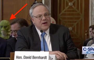 Ever since the confirmation hearing, swamp creatures have been following Secretary Bernhardt around: from his confirmation hearing in the Senate, his testimony about Trump's 2020 budget in the House, the steps of the Capitol, and even all the way to Vail, Colorado. Secretary Bernhardt is a true creature of the swamp - bringing the worst of the oil and gas industry, big development, backroom deals, and corruption back into DC. The swamp creatures want to make sure he doesn't forget where his loyalties lie, and support their good friend David Bernhardt in making DC swampy again.