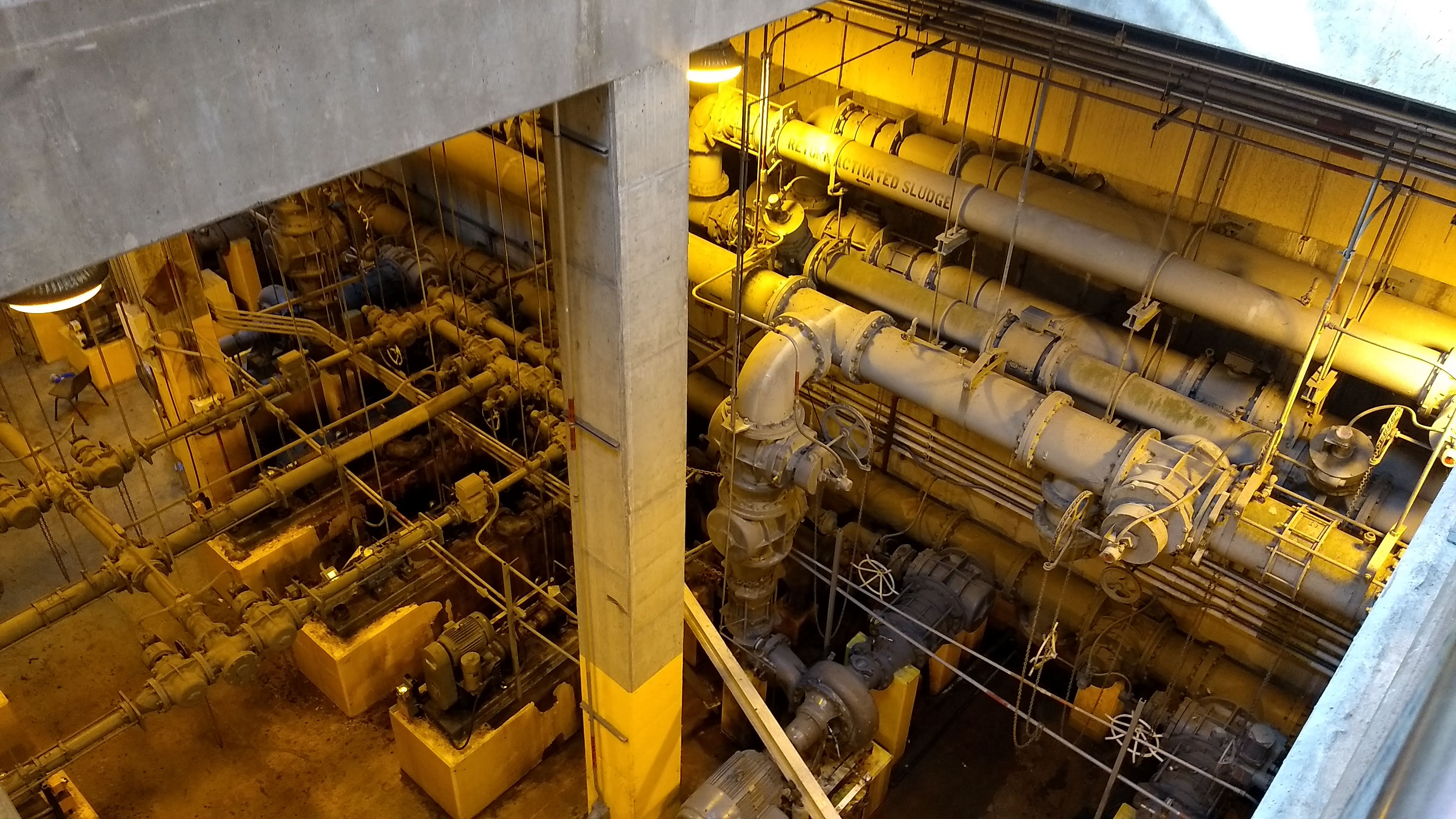 Once the 6 aerated tanks settle out the bigger solids the water flows through a 96 inch diameter pipe, in this pipe the total amount of water that flows into the plant is measured by sensor.