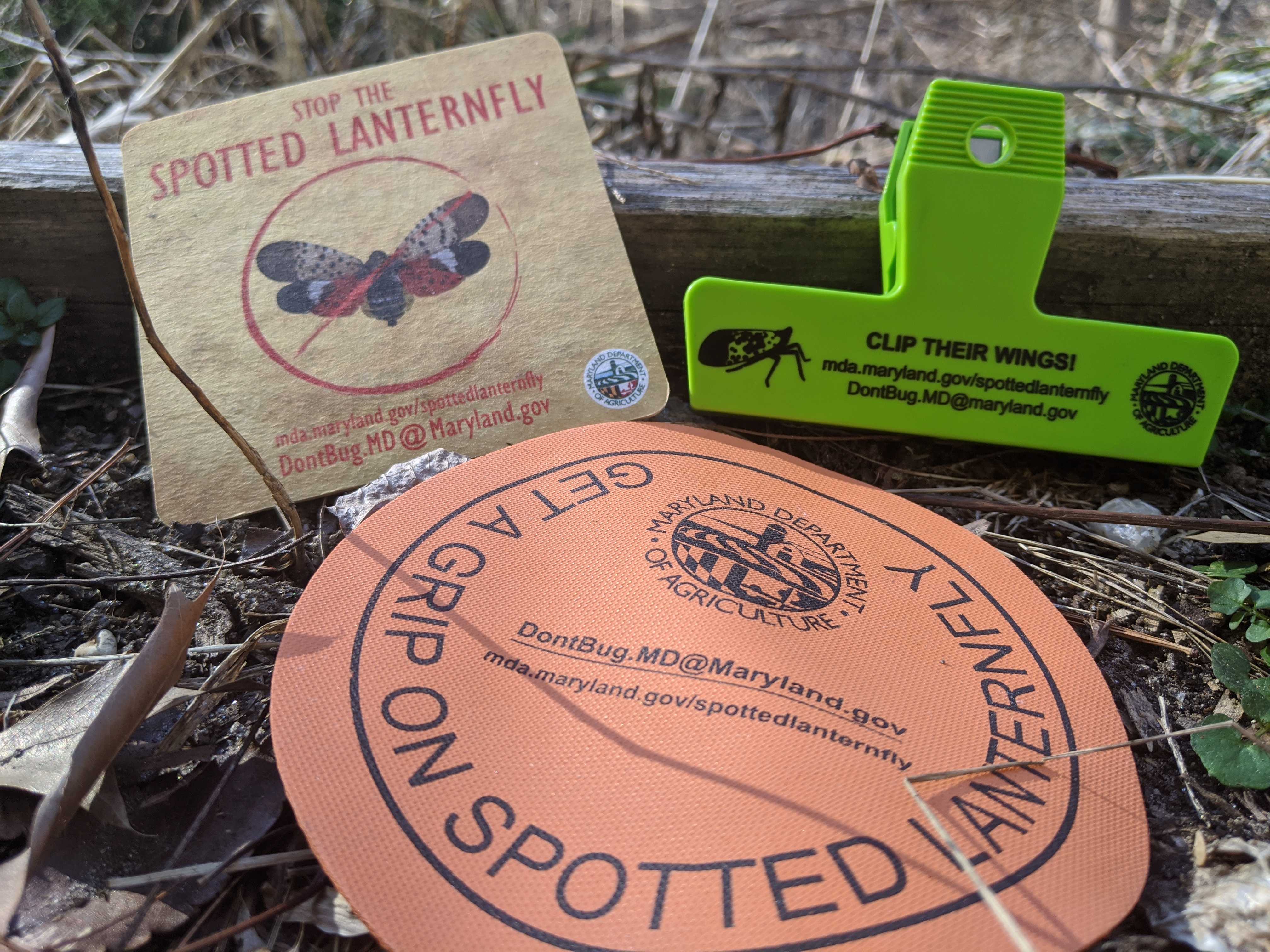 - In 2019, as opponents claimed that chlopyrifos was needed to control the spotted lanternfly, Maryland's Department of Agriculture dropped off branded-swag raising awareness of this favored opponent talking point. Swag included coasters, jar openers, clips, calendars, and other random items.