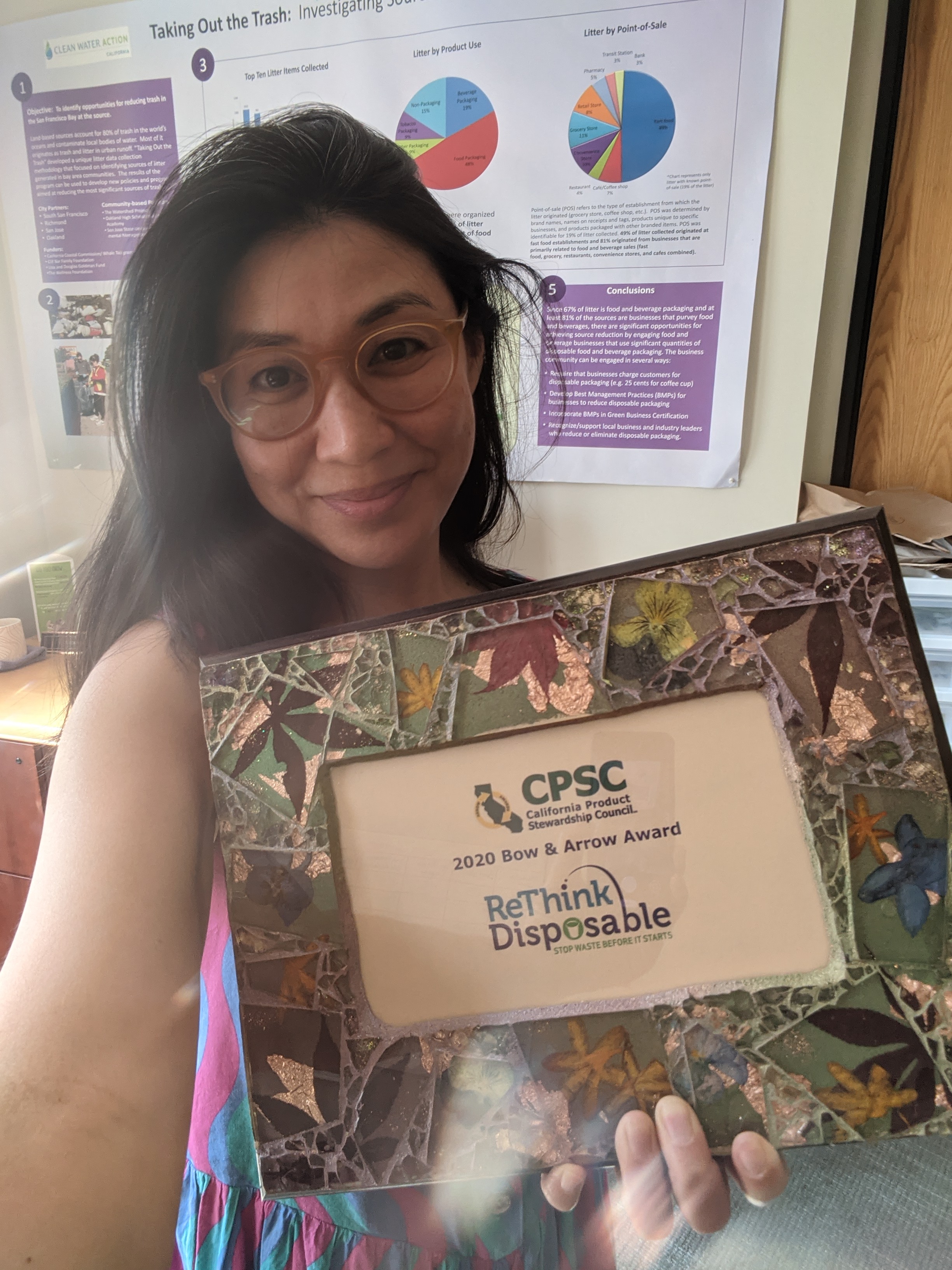 Clean Water Action’s ReThink Disposable team is excited to have received the Bow and Arrow award from the California Product Stewardship Council (CPSC). This award recognizes our program’s mission to bring together stakeholders in the restaurant industry to reduce the consumption of harmful single-use plastics. Creative partnerships are at the heart of our work and we are honored by this recognition. We will continue to build collaborative relationships to shift communities away from disposable foodware so we can tackle the plastic waste crisis and preserve water quality for future generations.