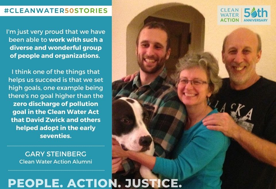 A message from Gary Steinberg to Clean Water Action: I'm very fortunate to have had a career with Clean Water consistent with my values working with wonderful people and organizations. I want to give a shout out to a few folks, while also saying that there's not nearly enough space to mention everyone I'd like to.
