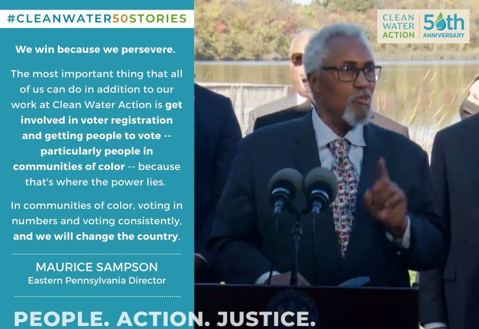 In honor of Clean Water Action's 50th birthday, we are lifting up voices and stories in the Clean Water movement through #CleanWater50Stories. Our story is the story of everyday people who have used their power to make a difference to create a healthier and greener future for all. Meet Clean Water Action's Eastern Pennsylvania Director, Maurice Sampson!