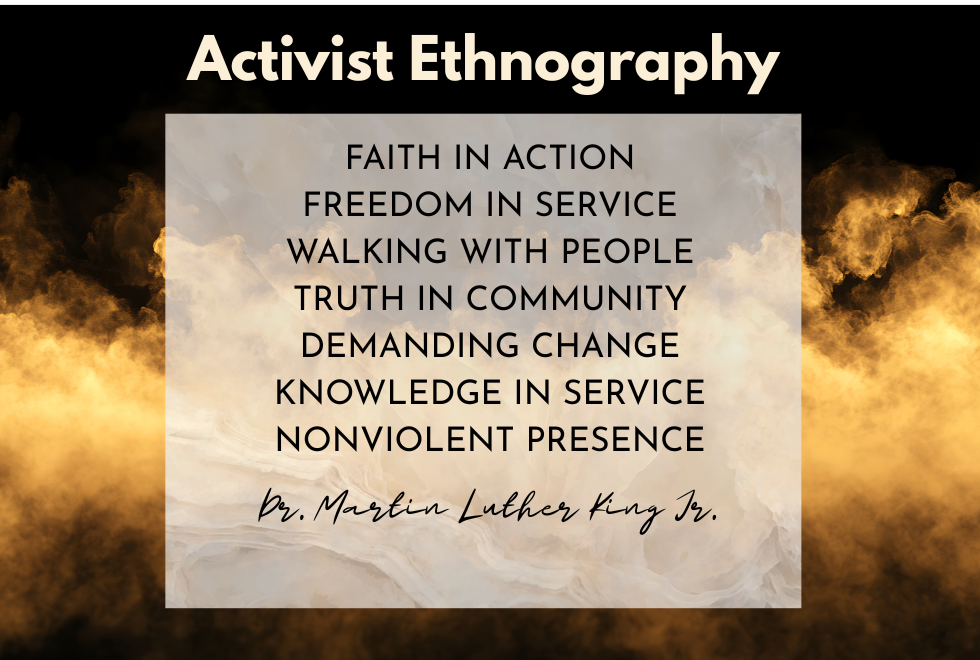 An example of his ethnographic skill and commitment that resonates with me was one of his trips to Chicago. Dr. King visited Homan Ave, a street in a predominately Black neighborhood, in the dead of winter in 1966. Upon arrival, he came to learn that many of the tenements in which people and their families resided, were without heat. Temperatures were below zero and many people’s lives wagered on their ability to access heat. Dr. King was offered the opportunity to reside in a hotel across the city, and he declined. He chose to stay with the people in this neighborhood and advocate for them from their position. He helped those he was living with from his own funds and access to labor by cleaning up the buildings and paying for repairs to restore heat. He then spent additional time lobbying city officials to immediately address the beyond subpar living conditions. Even though Dr. King was sometimes admonished by his own advisors for his level of commitment (and risk), it was this ethnographic immersion that educated him deeply on the plight of those he was working to aid. He won victory for his extended community as the city followed his visit with special interest in the neighborhood that led to city sponsored pest extermination and the advent of building inspectors verifying adherence to codes.