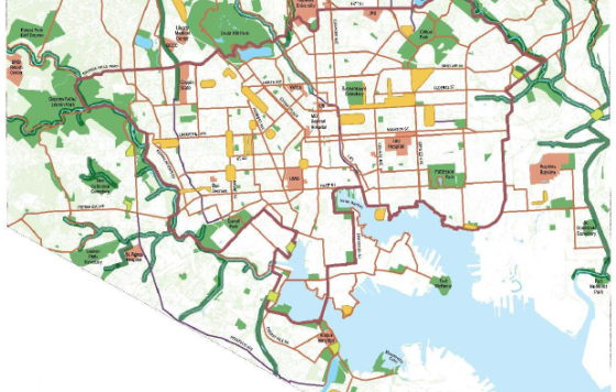 The Green Network Plan is the Baltimore Office of Sustainability’s plan to transform vacant and abandoned properties into community assets, such as gardens, parks, urban farms, recreational fields, and more. They've been working for over a year to come up with an outline of green nodes and corridors