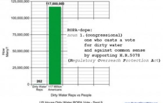 by Jonathan A. Scott, on Twitter @jscottnh Following Tuesday's US House vote to pass the ROPA Dirty Water bill (HR 5078, approved 262-152) we published this infographic on Clean Water Action's Twitter and Facebook accounts: We also published a link to information on how individual House Members