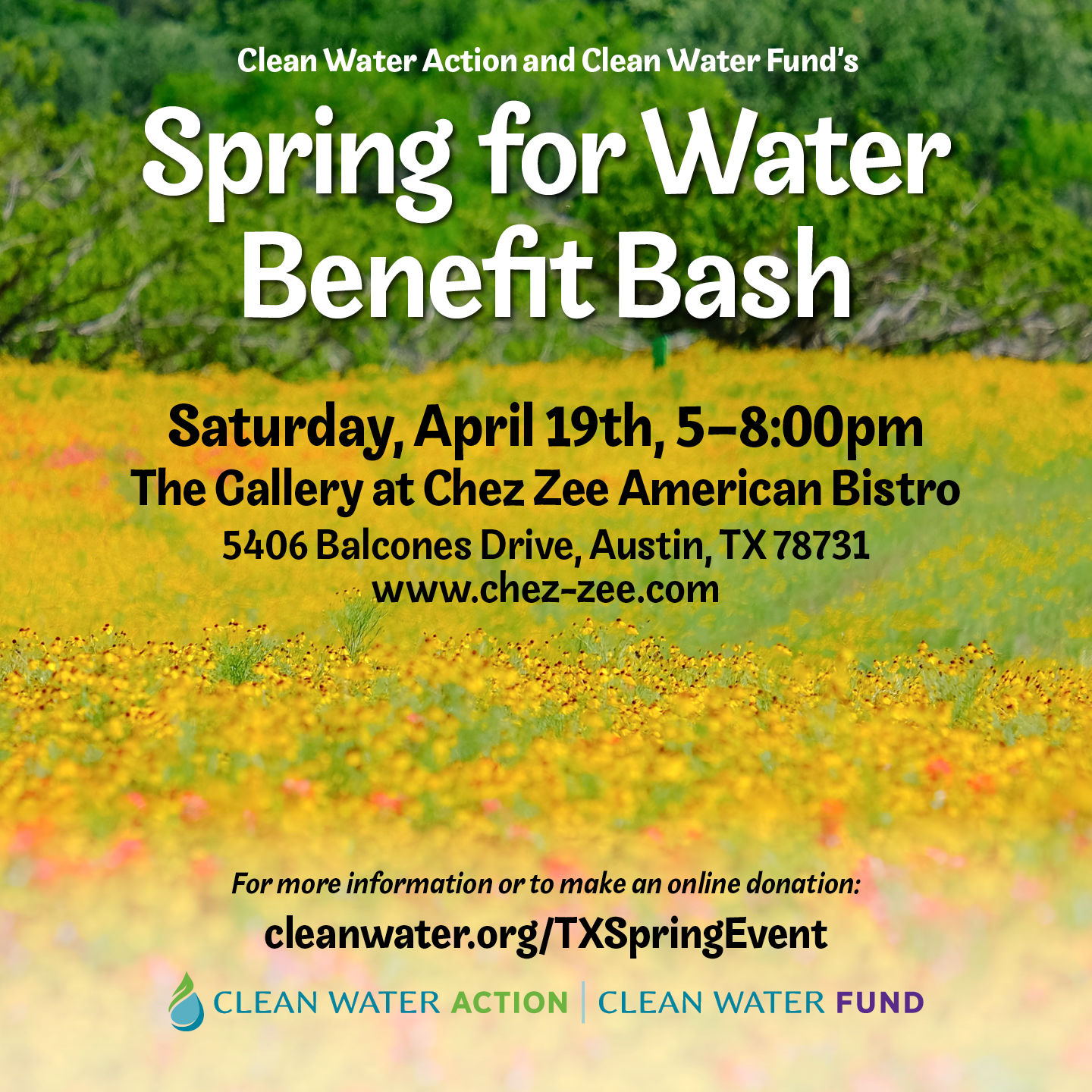Join us IN PERSON at the delightful Chez Zee American Bistro on Saturday, April 19 from 5:00 to 8:00 p.m. for Clean Water Action and Clean Water Fund’s 2025 Spring for Water Benefit and Bash.