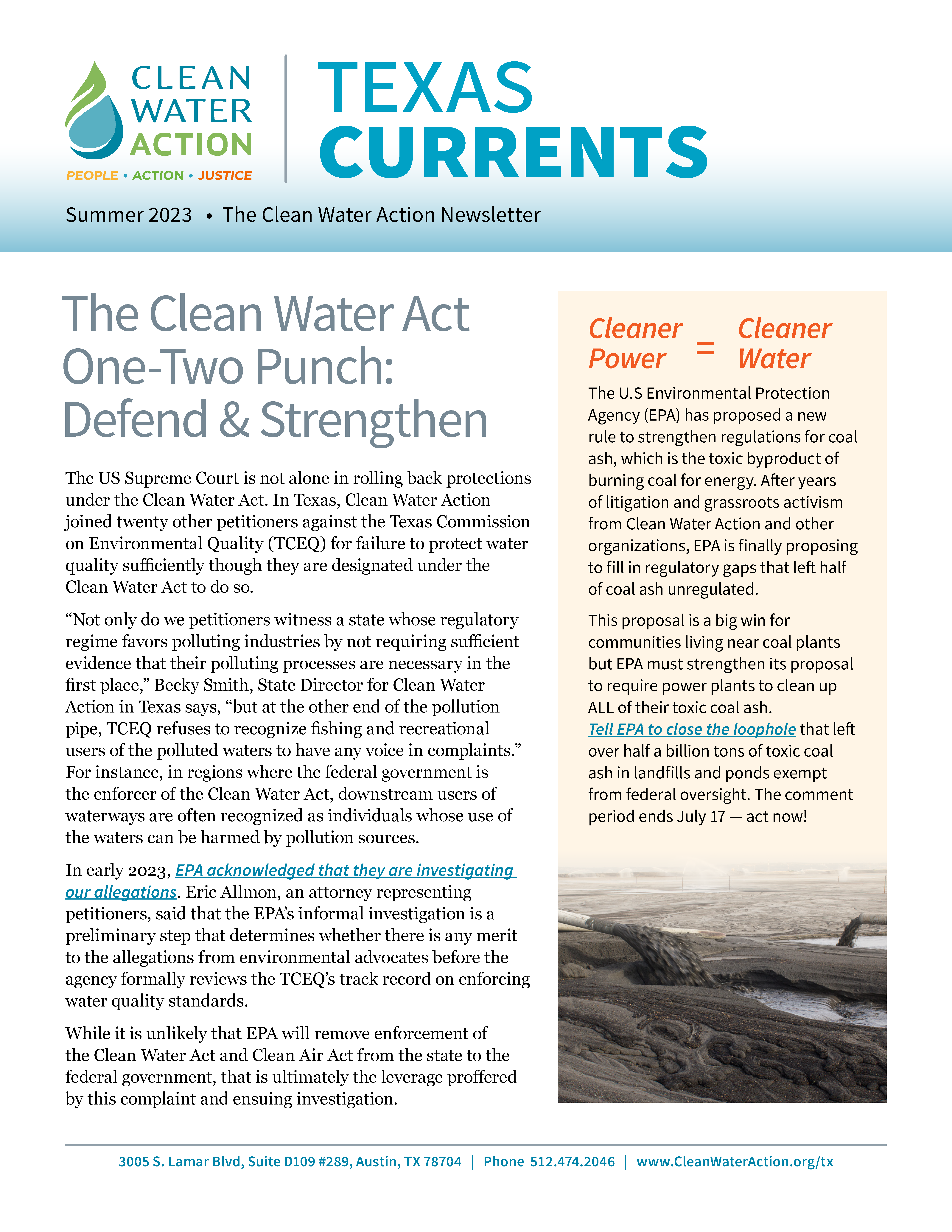 The US Supreme Court is not alone in rolling back protections under the Clean Water Act. In Texas, Clean Water Action joined twenty other petitioners against the Texas Commission on Environmental Quality (TCEQ) for failure to protect water quality sufficiently though they are designated under the Clean Water Act to do so.