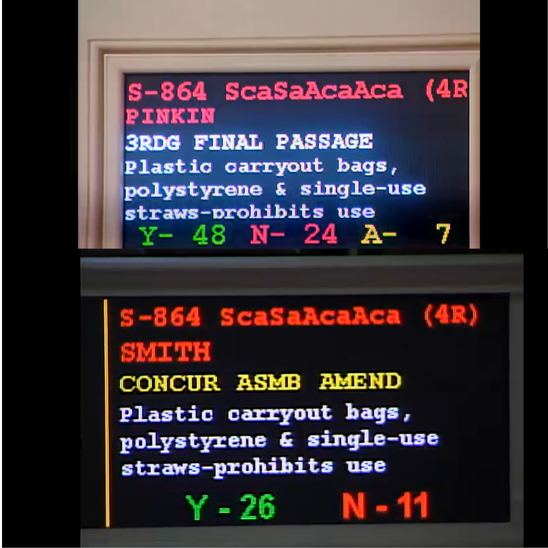 “Thank you to the Assembly Members who stood up for our Ocean Waves and Beaches today by voting for A 1978. I remember the first ‘informal’ joint legislative hearing on plastic bags held by Senator Smith at the shore in the Lavallette First Aid building eight or nine years ago. So many people worked so hard throughout this long journey but today's vote made it all worth it," said John Weber Mid Atlantic Regional Manager with the Surfrider Foundation.